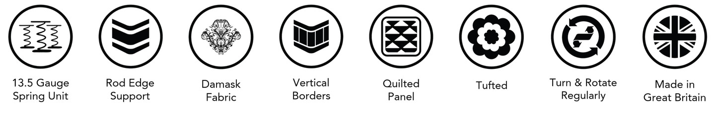 The Cambridge Mattress features a 13 ½ Gauge Spring Unit, a six-gauge wire rod edge support, quality stitch bond fabric, and a traumatic quilted design on a medium loft.