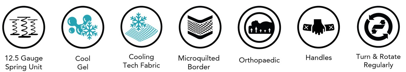 The Caspian Mattress by Beauty Sleep features a 12.5 g spring orthopaedic unit, topped with a 50mm Cool Gel layer.